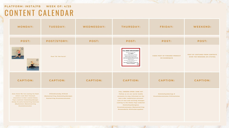 Weekly Content Calendar Creation